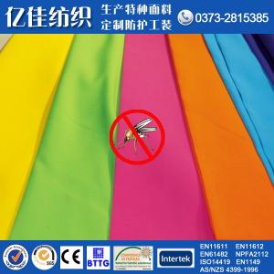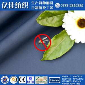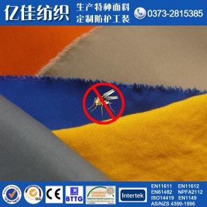 亿佳防蚊虫面料:通过添加从菊科类等植物中提取的环保无毒整理剂整理,应用较前卫的微胶囊缓释技术,使织物具有驱避和触杀蚊虫的功能,使用防蚊虫面料制成的成衣服饰,可广泛运用于家庭、宾馆、饭店、医院、公共场所、田间劳动、科考、部队、老人、儿童、学生、夜间娱乐等户外活动和休息的人们解除蚊虫叮咬疾病传染的侵扰。亿佳防蚊虫面料经权威机构测试,对蚊虫的驱避率高达90%以上。经家庭洗涤70次后,驱蚊效果仍然可达80%;且同时具有天然抗菌除臭效果,对蟑螂、蠓虫、牛虻、跳蚤、鹿蝇、白蛉等都有驱避作用!亿佳防蚊布03732815385 生态环保,符合oeko-tex 100标准。亿佳防蚊布的应用范围:可适用于棉,涤棉,棉锦,锦纶等成份的面料上。被广泛使用于野外露营制品(成衣及帐篷)、作战服(BDU)、成衣、特殊场地类防护、窗帘等。