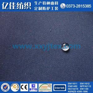 亿佳防酸碱面料:主要是防止酸、碱等化学药剂对人体的伤害,延长酸液从服装表面渗透到皮肤的时间,使酸、碱液在服装表面不粘附,服装在酸液侵蚀后强力变化较小并能承受较强的酸压。 用于频繁接触酸液、碱液的工作人员防护服,分为透气性和不透气性两种规格。可达到GB 24540-2009、EN368、EN 13014 等标准。可用于棉类及化纤混纺类,如全涤、涤棉、cvc、锦棉等成份的面料上。 亿佳防酸碱面料主要用于化工、冶金、矿产、地质、电镀、印染、造纸等行业和酸碱、化学药剂接触的工装防护面料。